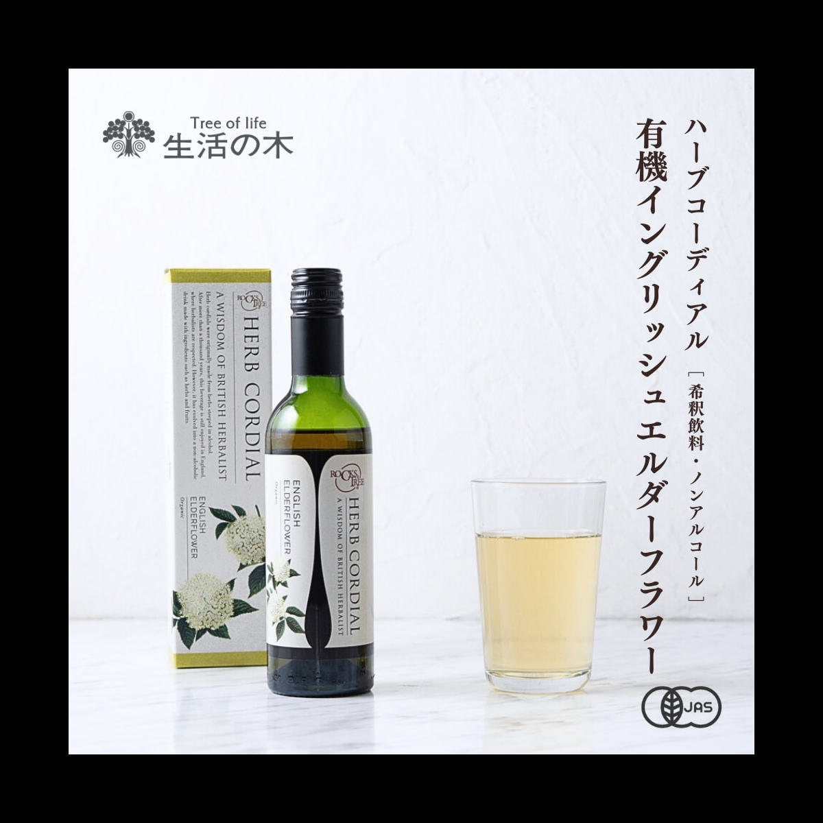 商品名:生活の木 ロックス&トゥリー ハーブコーディアル 有機イングリッシュエルダーフラワー 360ml